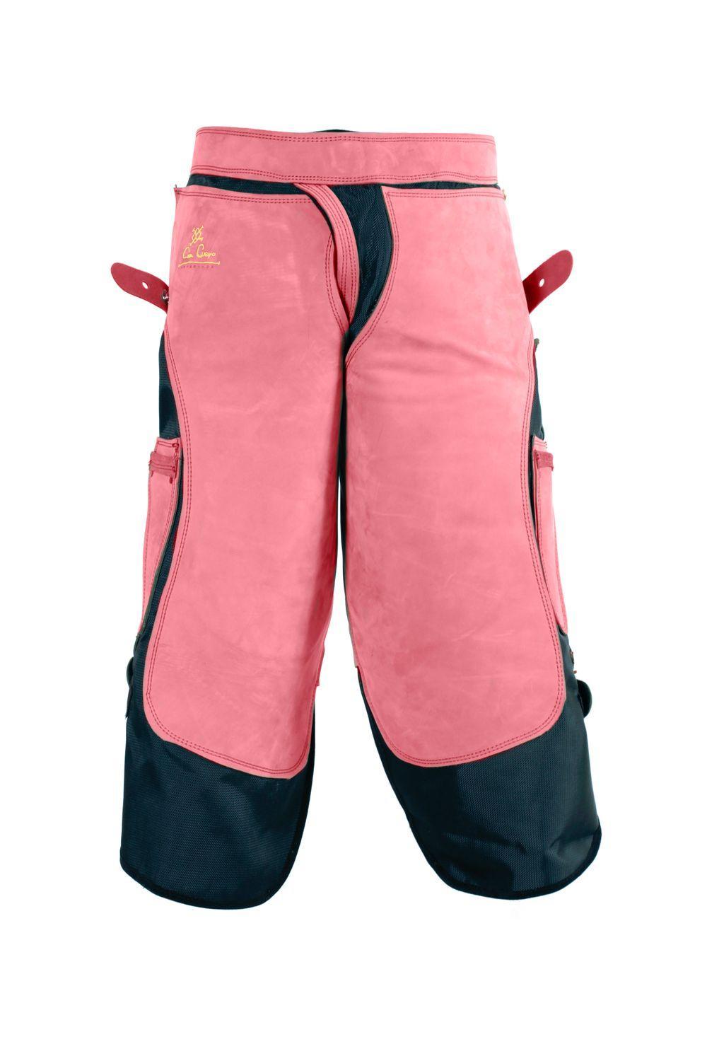Svankskydd med 8 mm stoppning. Lätt justerbar midjestängning med högsäkerhetsspänne i aluminium. Gummi invändig stoppning på förstärkningen. Två magneter, en på varje sida. Fyra knivfickor och en femte multifunktionsficka. Tenax benjustering. Långa modeller har kardborrband i botten. Förbättrad design för att göra dem så lätta som möjligt utan att kompromissa med hållbarheten som kännetecknar Con Cuero. Grenen är öppen, med korsade ben.