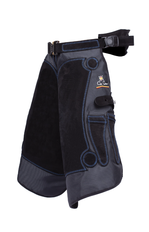 Nytt fräscht förkläde från Con Cuero! Snabbkopplat spänne framtill. Varje sida av midjan har ett vridbart spänne för att säkerställa att förklädet sitter perfekt när man böjer sig och står upp. De två magneterna nertill har större diameter för att hindra sömmen från att falla av. En liten kraftig magnet upptill på höger sida för att fästa skor eller verktyg på. Fyra fickor. Öppen gren. Som alla Con Cueros förkläden är de tillverkade i eldfast Kevlar och högkvalitativt skinn.