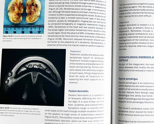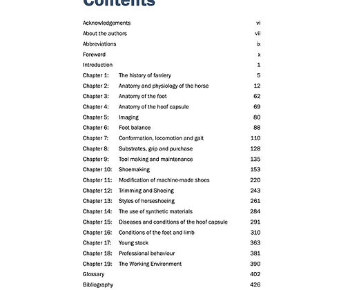 Över 400 sidor, med uppslagsverk i slutet av boken, som förklarar termer som används inom hovslageri.