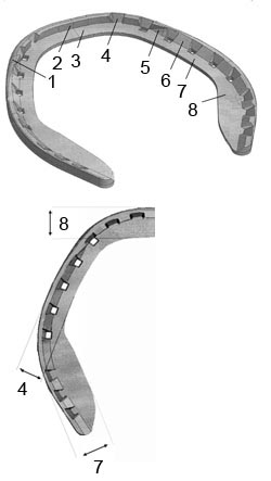 8 Tunn stomme utan dubbelfals ger plats till grus, ökar greppet och minskar risken att skorna bär hästen.